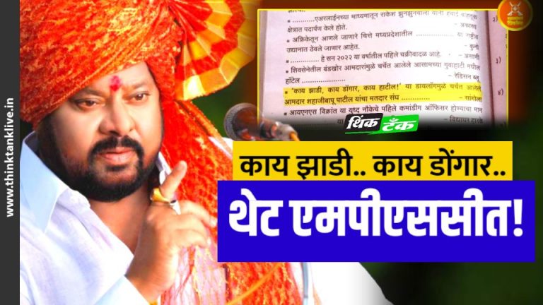 Spread the love थिंक टँक / नाना हालंगडे सांगोल्याचे आमदार शहाजीबापू पाटील यांच्या काय झाडी .. काय डोंगार .. सगळं ओक्के हाय .. या वाक्यानं राज्यातच नव्हे संपूर्ण देशभरात धुमाकूळ घातला आहे . मुख्यमंत्र्यांपासून ते राज्यातील सर्व मंत्र्यांच्या तोंडी “काय झाडी अन् काय डोंगार”चीच चलती दिसून येत होती. सोशल मीडियावरही या वाक्यानं चांगलाच जोर धरला … Continue reading काय झाडी .. काय डोंगार थेट एमपीएससीत!