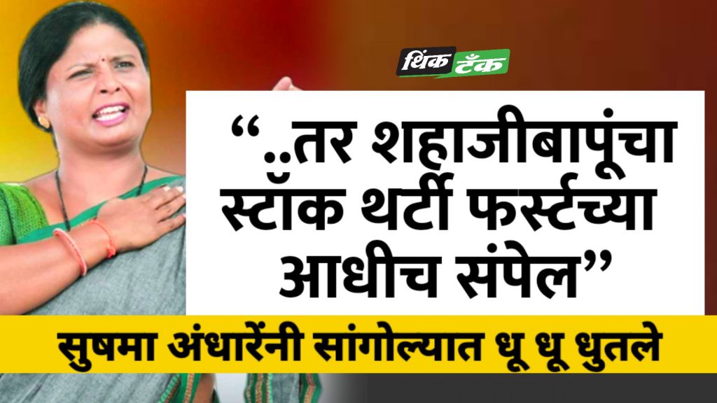 Spread the loveसुषमा अंधारे यांनी एक एक पिसे उपसून काढली. येत्या निवडणुकीत शहाजीबापूची विकेट नक्की असल्याचे सांगितले. शहाजीबापू यांचा जुना व्हिडिओ लावत सुषमा अंधारे म्हणाल्या की, “मी शहाजीबापूंना एवढेही टेन्शन देणार नाही की त्यांचा सर्व स्टॉक थर्टी फर्स्टच्या आधीच संपून जाईल. कारण त्यादिवशी ड्राय डे असतो.” थिंक टँक / नाना हालंगडे “सांगोल्याचे आमदार शहाजीबापू पाटील … Continue reading ..तर शहाजीबापूंचा स्टॉक थर्टी फर्स्टच्या आधीच संपेल