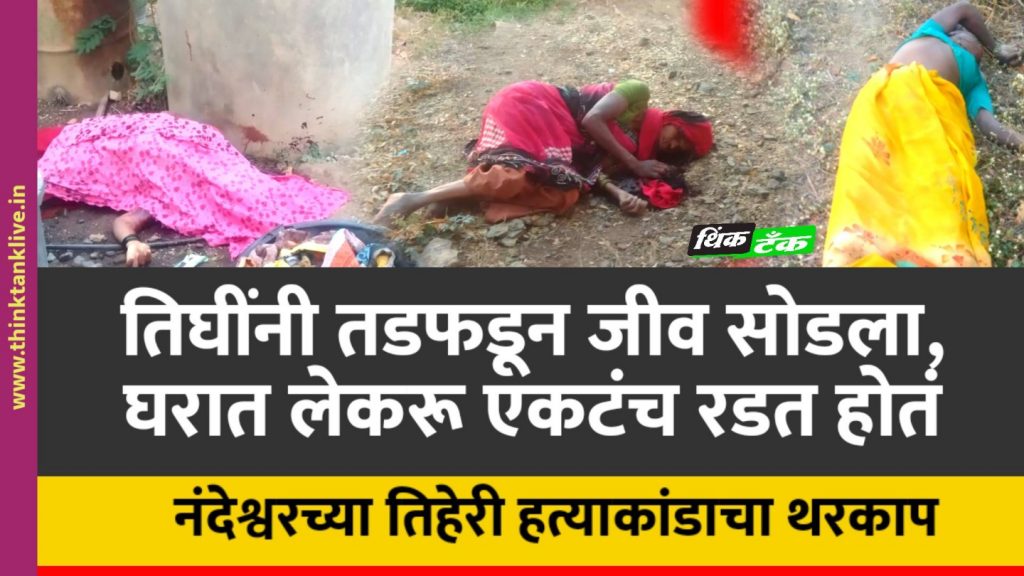 Spread the love थिंक टँक न्यूज नेटवर्क मंगळवेढा तालुक्यातील नंदेश्वर येथील तिहेरी हत्याकांडात ठार झालेल्या दोघी सख्ख्या बहिणी आहेत. तर एकजण या घरातील सून आहे. नराधमाने अत्यंत निर्घुणपणे दगडाचे घाव घालून एकापाठोपाठ एक असे तिघींना ठार केले. या तिघीही तडफडून जीव सोडत असताना घरात चार महिन्याचं लेकरू रडत होतं. अंगाचा थरकाप उडवणाऱ्या या घटनेने सोलापूर … Continue reading तिघींनी तडफडून जीव सोडला, घरात लेकरू एकटंच रडत होतं