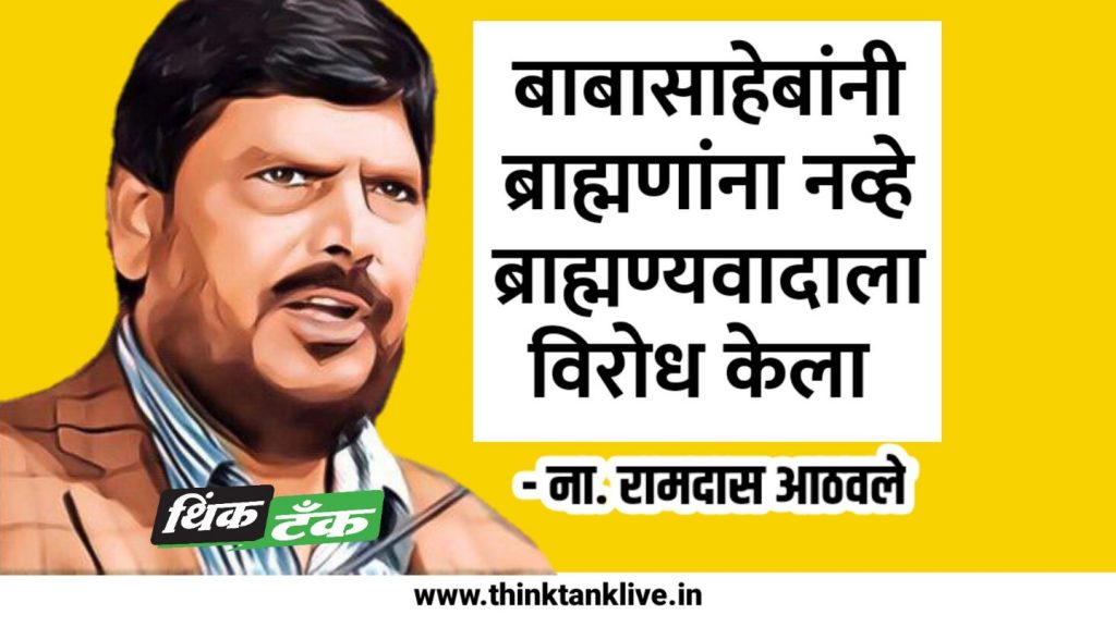 बाबासाहेबांनी ब्राह्मणांना नव्हे ब्राह्मण्यवादाला विरोध केला : ना. रामदास आठवले