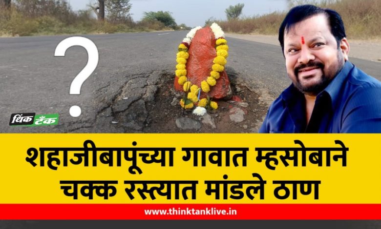 शेतशिवाराचं रक्षण व्हावं म्हणून शेतकरी बांधावर, शिवेवर म्हसोबाची स्थापना करतात. अचानक हाच म्हसोबा राष्ट्रीय महामार्गावर पडलेल्या खड्ड्यात येऊन बसला. रस्त्याने जाणाऱ्यांना धक्काच बसला. तेवढ्यात म्हसोबाच्या नावानं चांगभल…. हे मस्होबा देवा तूच आता खड्ड्याने जर्जर झालेल्या या महामार्गावरून प्रवास करणाऱ्या प्रवाशांचे रक्षण कर रे देवा… अशा घोषणा ऐकू आल्याा.