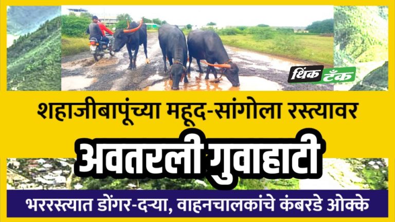 Spread the love थिंक टँक / नाना हालंगडे “काय झाडी…काय डोंगार…काय हाटील… एकदम कसं ओक्के..” अशा शब्दांत गुवाहाटीचे वर्णन करणारे कवीमनाचे आमदार शहाजीबापू पाटील यांचे गाव असलेल्या महुद ते सांगोला रस्त्यावर साक्षात गुवाहाटी अवतरली आहे. २५ किमीच्या रस्त्यात ठिकठिकाणी (नव्हे संपूर्ण रस्त्यातच) भलेमोठे खड्डे पडले आहेत. या खड्ड्यांमधून प्रवास करताना चक्क गुवाहाटीला गेल्याचा फिल वाहनचालकांना … Continue reading शहाजीबापूंच्या महूद-सांगोला रस्त्यावर अवतरली गुवाहाटी