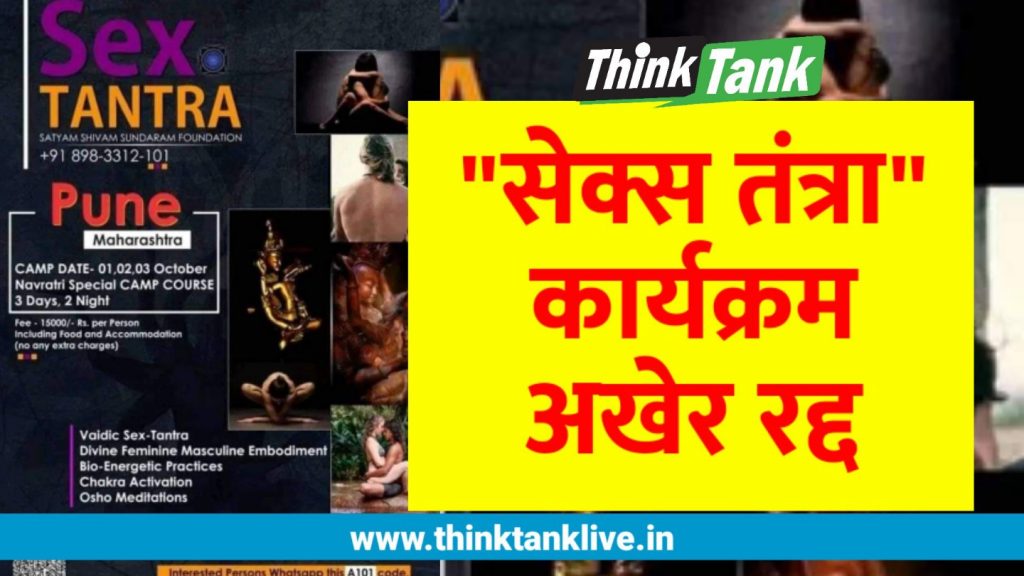 Spread the love Pune: Think Tank News Network “सेक्स तंत्रा” नावाचा कार्यक्रम अखेर रद्द करण्यात आला आहे. पुणे पोलिसांकडून या सेक्स तंत्राच्या आयोजकांचा शोध सुरु झाला. तेव्हा या सेक्स तंत्राचे आयोजन करणारे सत्यम, शिवम, सुंदरम फाऊंडेशन हे उत्तर प्रदेशातील असल्याचं आणि रवी सिंग हा त्याचा प्रमुख असल्याची माहिती पोलिसांना मिळाली. पोलिसांनी इशारा देताच या रवी … Continue reading “सेक्स तंत्रा” कार्यक्रम अखेर रद्द