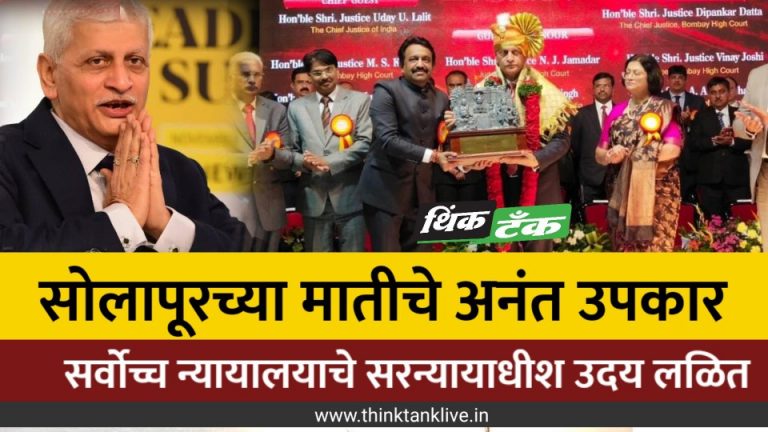Spread the love सोलापूर : माझ्या वकिली व्यवसायामध्ये कुटुंब, मित्र, सोलापूरकराचे योगदान आहे. तरूण नवोदित वकिलांनी पॅशन म्हणून वकिली करावी. या व्यावसायात सुरूवातीला अनंत अडथळे येतात, ठेचा बसतात या अडथळ्यांच्या शर्यतीला घाबरू नका, पुढे चालत रहा, असे आवाहन देशाच्या सर्वोच्च न्यायालयाचे सरन्यायाधीश उदय लळित यांनी केले. महाराष्ट्र, गोवा बार कौन्सिलच्या वतीने हुतात्मा स्मृती मंदिरात आयोजित … Continue reading सोलापूरच्या मातीचे अनंत उपकार