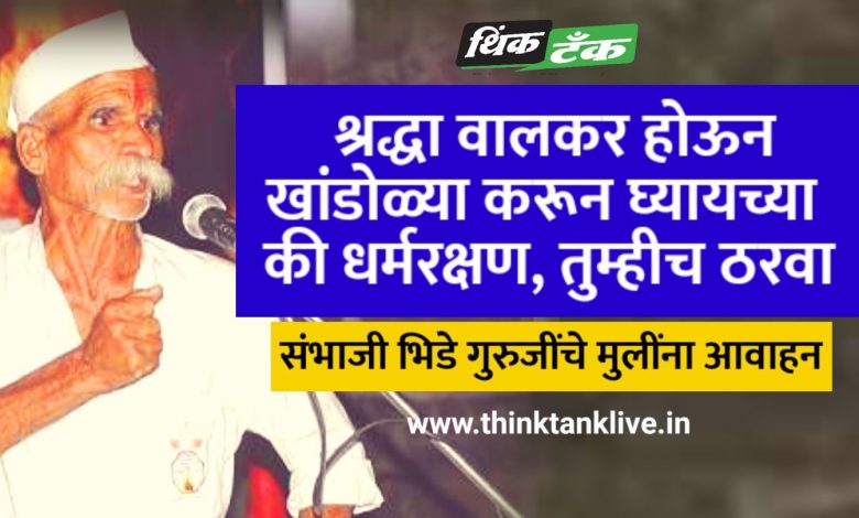 देशात आणि राज्यात लव्ह जिहादचे प्रमाण वाढत आहे. यातून श्रद्धा वालकरसारख्या मुलीचा अंत झाला हे विसरून चालणार नाही. स्वतःच्या आई-वडिलांचे संस्कार विसरून श्रद्धा वालकरसारख्या स्वतःच्या खांडोळ्या करून घ्यायच्या की धर्मरक्षण करायचं हे मुलींनी ठरवणं गरजेचं आहे, असे प्रखर मत , श्री शिवप्रतिष्ठान हिंदुस्थानचे संस्थापक गुरुवर्य संभाजी भिडे गुरुजी यांनी मांडले.