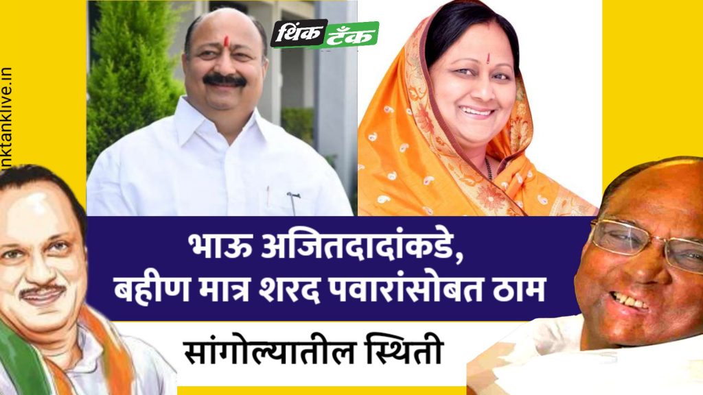 Spread the love थिंक टँक न्यूज नेटवर्क : नाना हालंगडे राष्ट्रवादी काँग्रेसचे प्रदेश उपाध्यक्ष व माजी आमदार दीपक आबा साळुंखे पाटील हे आज राज्याचे उपमुख्यमंत्री अजित पवार यांच्या व्यासपीठावर तर त्यांची सख्खी बहीण महिला राष्ट्रवादी काँग्रेसच्या प्रदेश उपाध्यक्ष व सोलापूर जिल्हा परिषदेच्या माजी अध्यक्षा जयमालाताई गायकवाड या शरद पवार यांच्या गटात सामील झालेल्या दिसून आल्या. … Continue reading भाऊ अजितदादांकडे, बहीण मात्र शरद पवारांसोबत ठाम