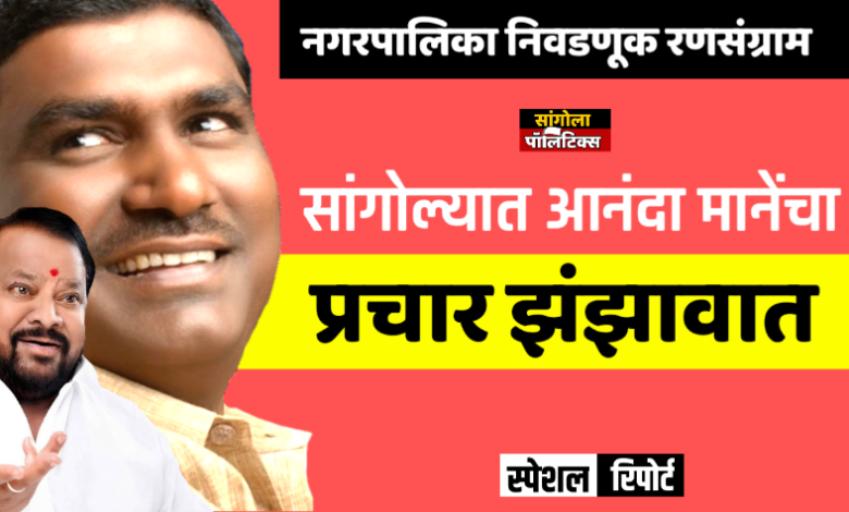 जनतेतून नगराध्यक्ष ही दुसरी निवडणूक असून,शहरात तिरंगी लढतीचे चित्र स्पष्ट आहे. अशातच सेनेकडून अर्थात बापू गटाकडून आनंदा माने यांनी प्रचाराचही सुरुवात केली आहे. यांच्यासह अन्य २३ नगरसेवक धनुष्यबाण चिन्हावर ही निवडणुक लढवीत आहेत. खरे तर सांगोल्यात प्रस्थपित असलेल्या व् भाजपाशी हातमिळवणी करीत दोन आजी माजी आमदार तर दुसरीकडे माजी आमदार यांच्या गटातील ही निवडणूक अटीतटी अशीच होणार आहे. असे हे विदारक चित्र असले तरी आनंदा माने यांनी सोशल मीडियावर धुमाकूळ घातलेला आहे. सर्वच यंत्रणा मोठ्या प्रमाणात कामालाही लावलेली आहे.