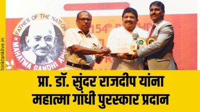 प्रा. डॉ. सुंदर राजदीप यांना महात्मा गांधी पुरस्कार प्रदान