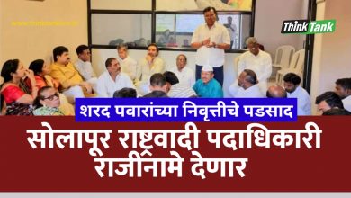 सोलापूर : थिंक टँक न्यूज नेटवर्क राष्ट्रवादीचे संस्थापक अध्यक्ष शरद पवार हे कार्यकर्त्यांचा श्वास आहेत. त्यांनी अध्यक्षपदावरून निवृत्त होण्याची घोषणा…